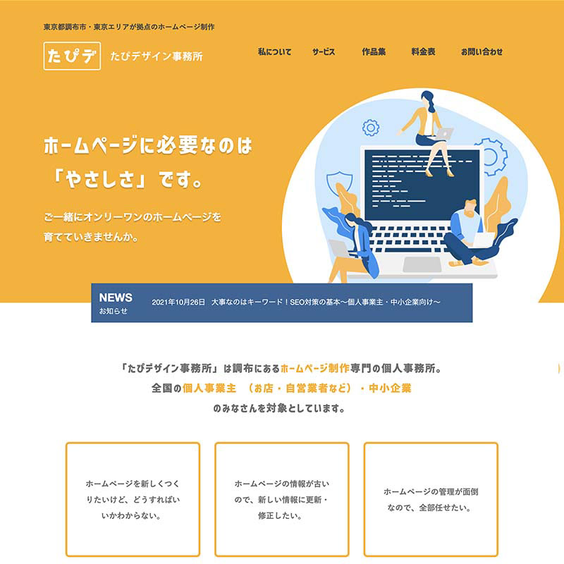 東京都調布市にある「たぴデザイン事務所」の公式サイトを作成いたしました。